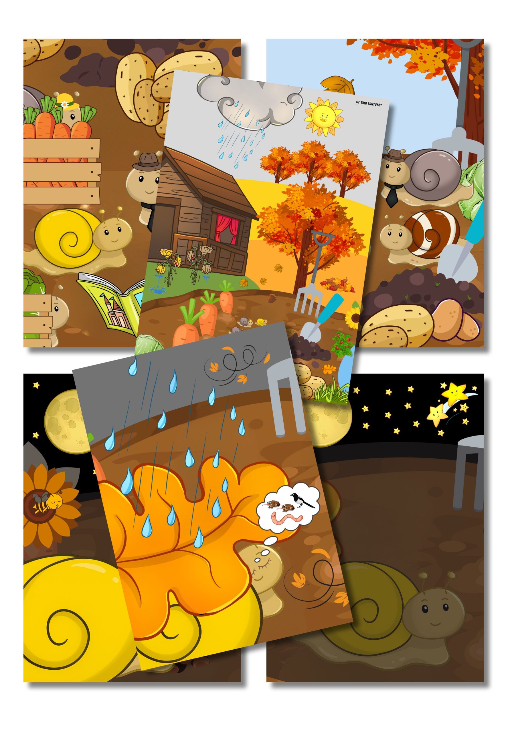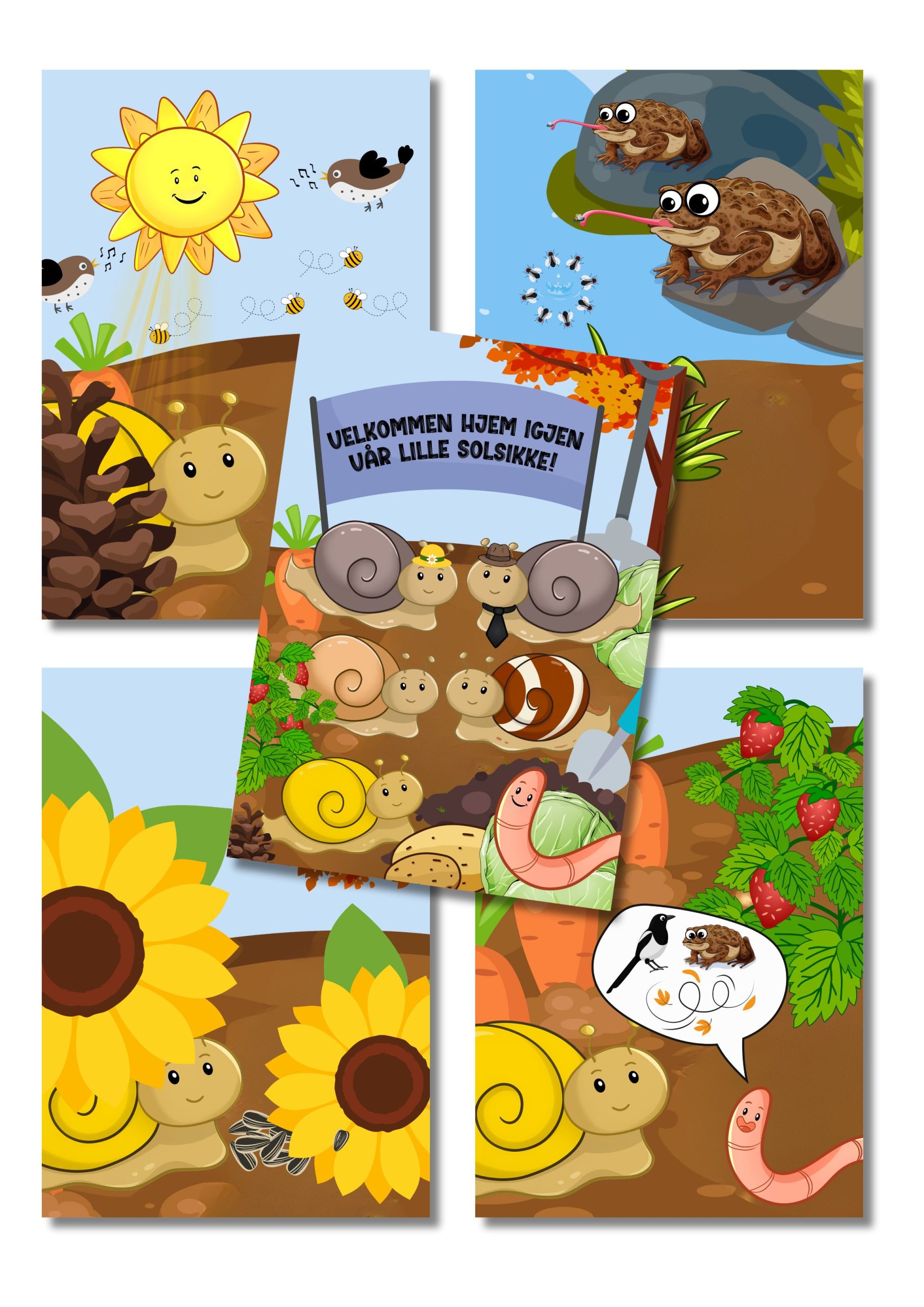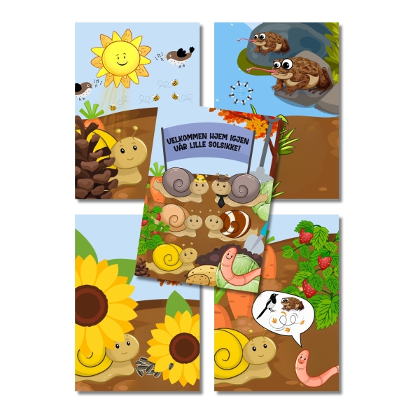 Sneglen som ville ut og se verden – fortellerkort – av Tina Saatvedt