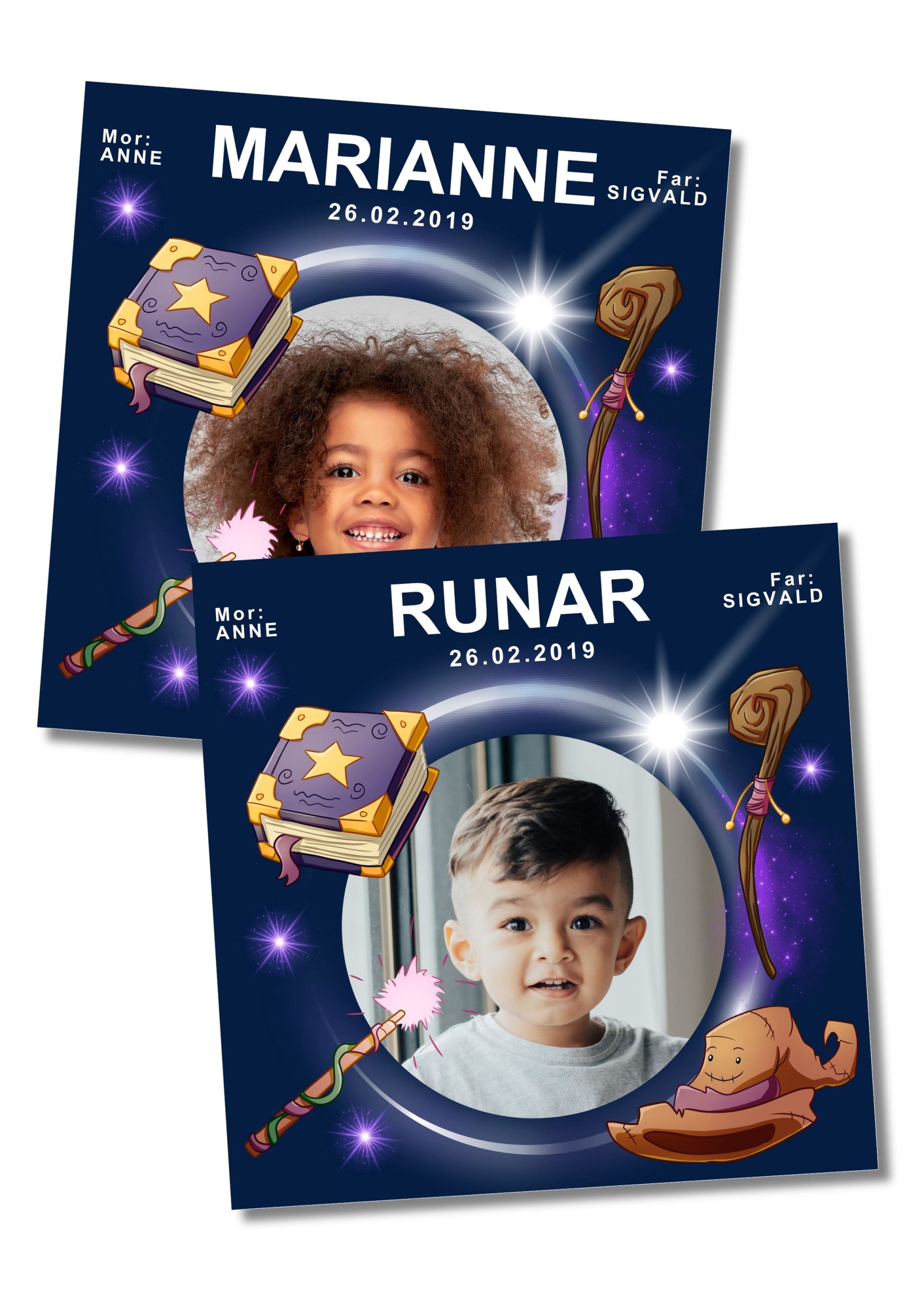 Navneskilt til garderobeplass med illustrasjoner som passer til avdeling Tryllestaven. 2 design. Ønsker du noen spesialtilpasset mtp størrelse/farger/motiv – send en e-post så endres/tilpasses det ditt behov. e-post: [email protected]